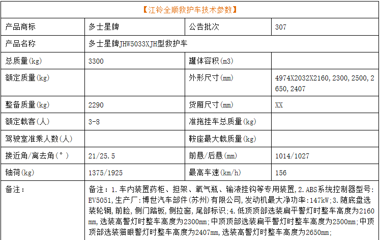 江鈴全順救護(hù)車圖片及公告參數(shù)