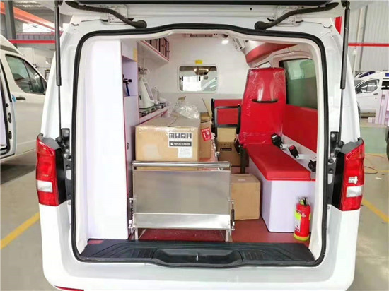 該車配備醫(yī)療器械柜,擔架,特種車輛標志燈及警報器等救護專用裝置;帶OBD;ABS廠家:博世汽車部件(蘇州)有限公司,ABS型號:ESP9;發(fā)動機最大凈功率為155kW;可選裝高頂車身,隨原車選裝天窗,帶行李架,前格柵鍍鉻條和排氣扇