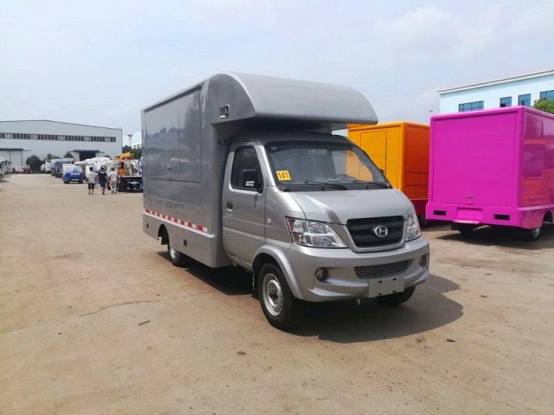 2.在車身兩側(cè)開(kāi)啟售賣窗口;廂體下欄板在售貨作業(yè)時(shí)可展開(kāi)平放以擴(kuò)展貨臺(tái)面積;