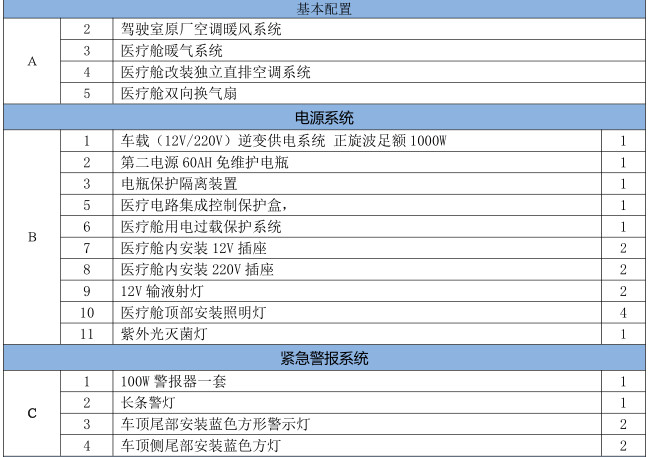 V348長(zhǎng)(短)軸中頂監(jiān)護(hù)型救護(hù)車改裝部分清單