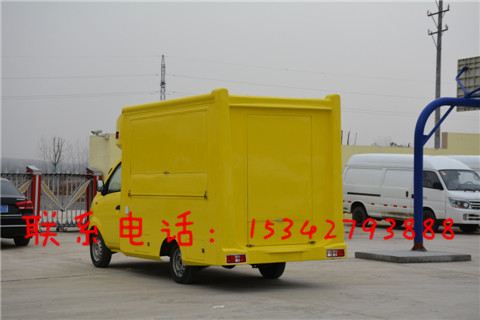 湖北俊浩生產(chǎn)的海馬售貨車車廂兩側(cè)為可開啟的不透明櫥窗,后部為可開啟車門 。