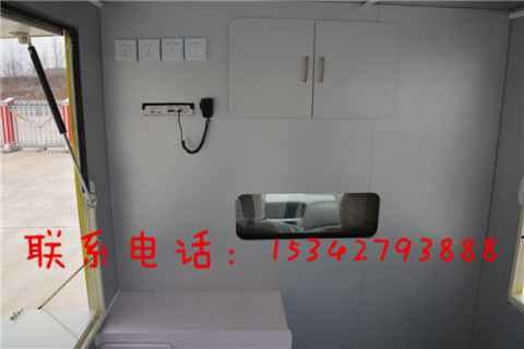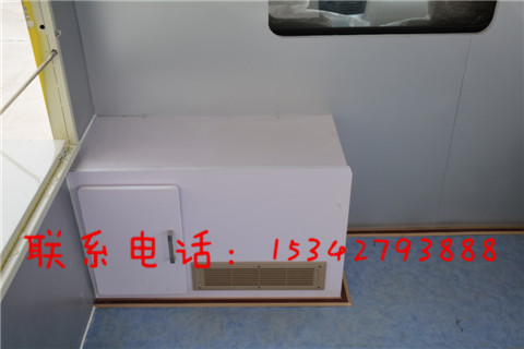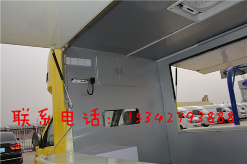 車廂內(nèi)部兩側(cè)裝有折疊式吧臺前部頂端為雙開門儲物柜。