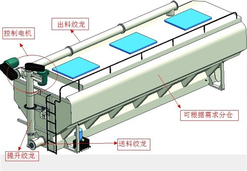 我公司生產(chǎn)的散裝飼料車使用的是原廠專用底盤(pán),上裝部分設(shè)施由罐體總成、輸送系統(tǒng)(水平卸料系統(tǒng)、垂直卸料系統(tǒng)以及活動(dòng)卸料系統(tǒng)組成)、液壓系統(tǒng)(高壓油泵經(jīng)管路與分配閥連接該閥的三個(gè)輸出端分別是轉(zhuǎn)角液壓馬達(dá)、升降油缸以及串聯(lián)在一起的水平卸料、垂直卸料、活動(dòng)卸料液壓馬達(dá))、電動(dòng)系統(tǒng)、氣動(dòng)分倉(cāng)機(jī)構(gòu)等組成。